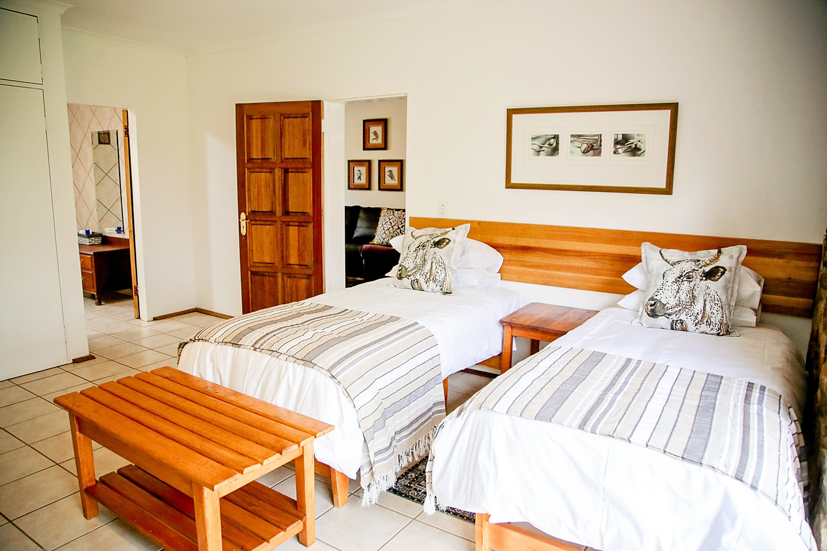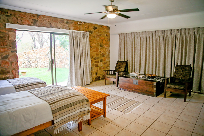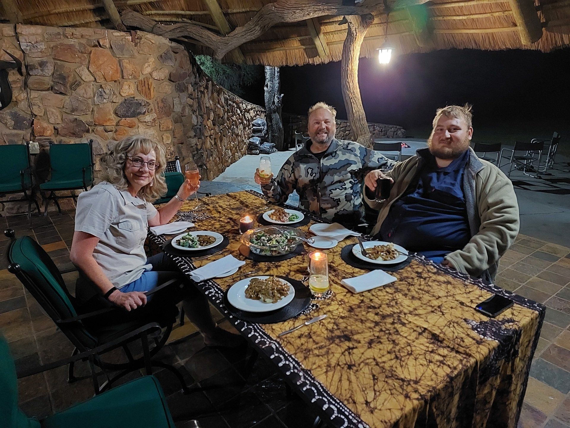 Our Hunting Camp is a cosy, clean and well run Bush Lodge. To provide our guests with the ultimate experience we prefer to cater to one group at a time. The lodge sleeps up to nine guests in luxury accommodations set in a lush garden with indigenous trees.